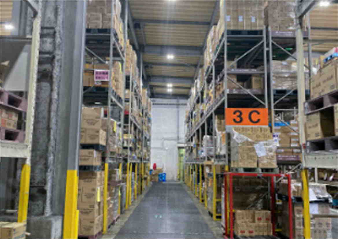 当社の倉庫内にて、フォークリフトでの